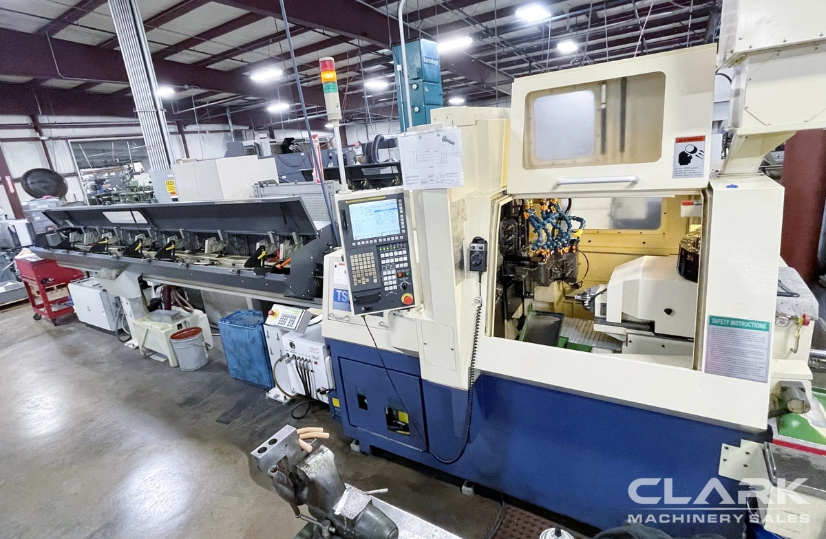 This Tsugami SS20 swiss type automatic lathe is ideal for machining complex small parts. It comes equipped with FMB turbo barfeeder, high pressure coolant, and is available immediately.