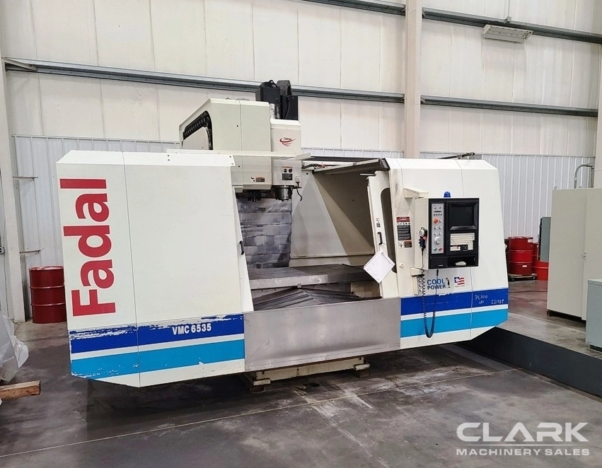 High performance, all box way Fadal 6535 with 50 taper spindle provides robust cutting and heavy chip removal with chip conveyor. Through spindle coolant is a great advantage on a machine of this size.