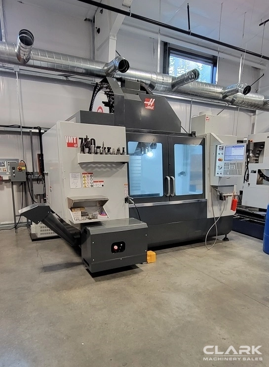 Unique B-axis Mill/Turn from Haas. High speed B-axis milling with 0 - 90 degree indexing, full lathe spindle on side for turning and C-axis work. Capable of doing complex 5-axis work, super equipped.