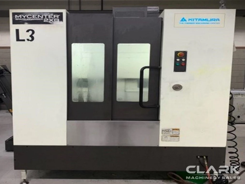 Enhance your shop with a 2017 KITAMURA MYCENTER 2XD. This used vertical machining center features a 22" table, 12,000 RPM spindle, and 40-tool ATC. Includes high-speed machining and automatic pallet changer. Available now.