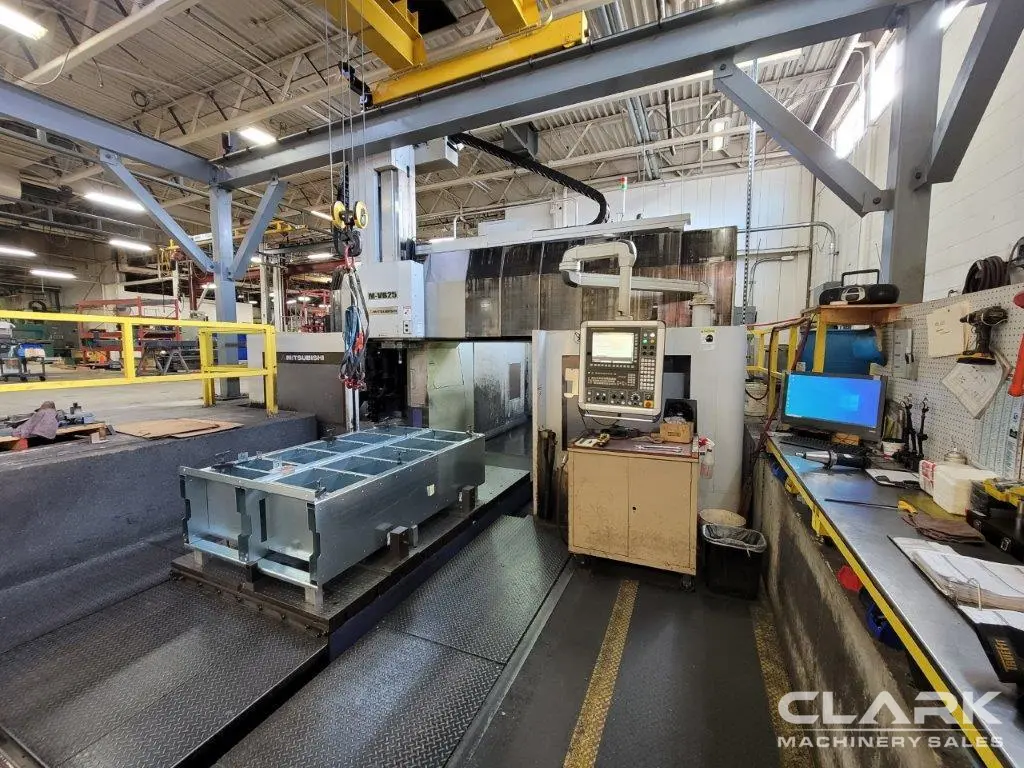 2015 MITSUBISHI M-VB25-5F Vertical Machining Center: 125" x 98" x 39" travels. Robust 26,400 lb table, high-capacity auto tool changer, FANUC control, & chip conveyor. Essential for heavy-duty machining.