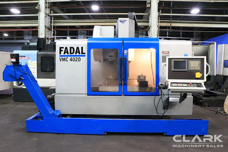 2006 FADAL VMC-4020HT vertical machining center. 48" table, 10K RPM spindle, 24 ATC, 4-axis CNC control. Comes with chip conveyor, rigid tapping, AC servos. Used, ready for immediate purchase.