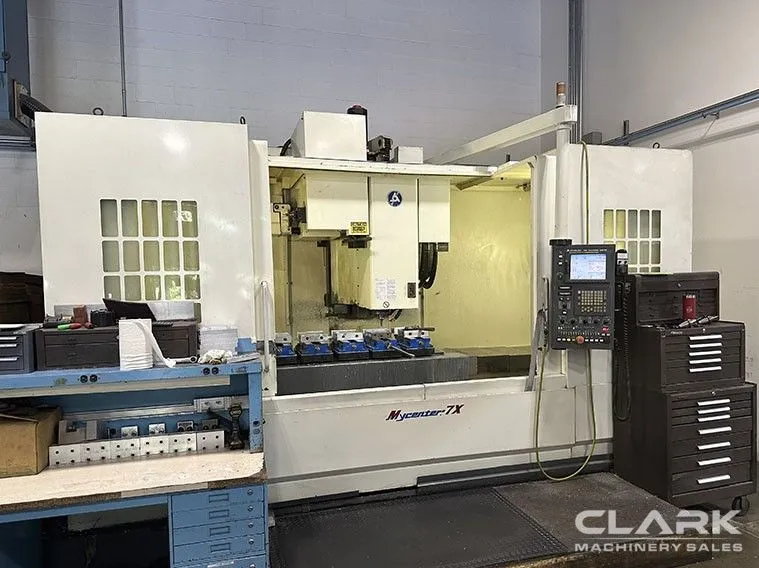 KITAMURA MYCENTER 7X 40 Taper Vertical Machining Center, 2006, used. Table 66.9" x 25.6", travels X/Y/Z: 60.2"/25.6"/27", spindle 15,000 RPM, 30 hp, CAT 40 taper. FANUC CNC, geared head, spindle chiller, ATC, chip conveyor. Ready to inspect and purchase.