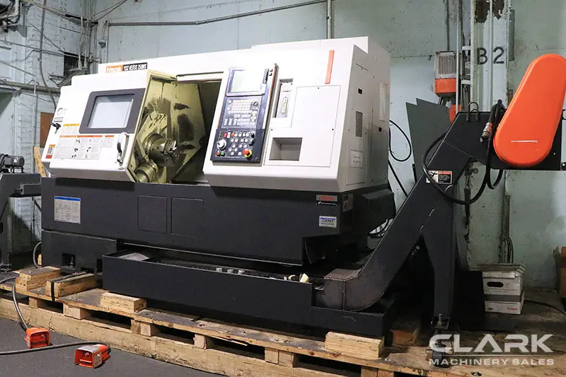 MAZAK QTN-250MS CNC Lathe, 2005 model, offers multi-axis capability with 26.57" swing, 14.96" max cut diameter, 21.2" centers distance, and 3.03" bar capacity. Equipped with MAZATROL 640T, sub-spindle, live milling, chip conveyor, and tool holders for enhanced efficiency.