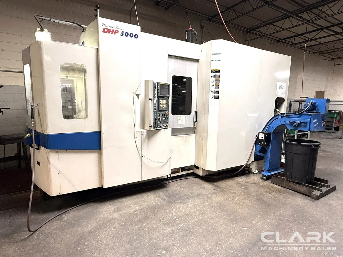 (2) 19.7" Pallets, Coolant Thru Spindle, 14,000 RPM spindle, 60 ATC, CAT 40, Fanuc Control. This well maintained 2006 Doosan Daewoo DHP-5000 horizontal machining center also includes CoolJet coolant system and is in plant, under power and ready for inspection. Priced to move quickly.