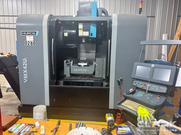 Hurco WinMax, Dual-Screen Control, Built-In 5-Axis Trunnion, ChipBlaster Through-Spindle Coolant, Renishaw Probing, 12,000 RPM, 40 Tool Positions, Chip Conveyor, 5,000 Hours. This 2014 Hurco VMX42Ui is in plant, under power and available immediately.