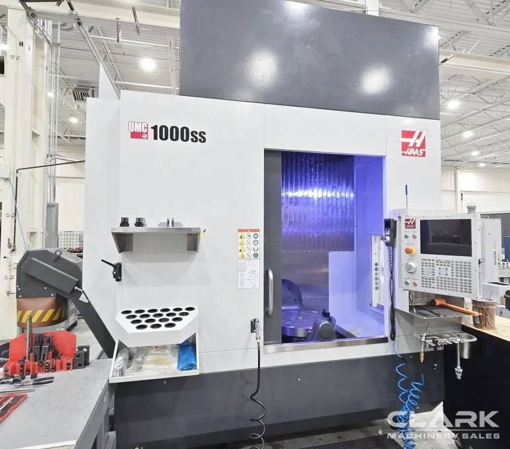 NextGen Control, 25" Platter Diameter, 15,000 RPM Spindle, Through-Spindle Coolant, Renishaw Probing, Chip Conveyor. This 2021 Haas UMC-1000SS Universal Machining Center is in plant, under power and available immediately.