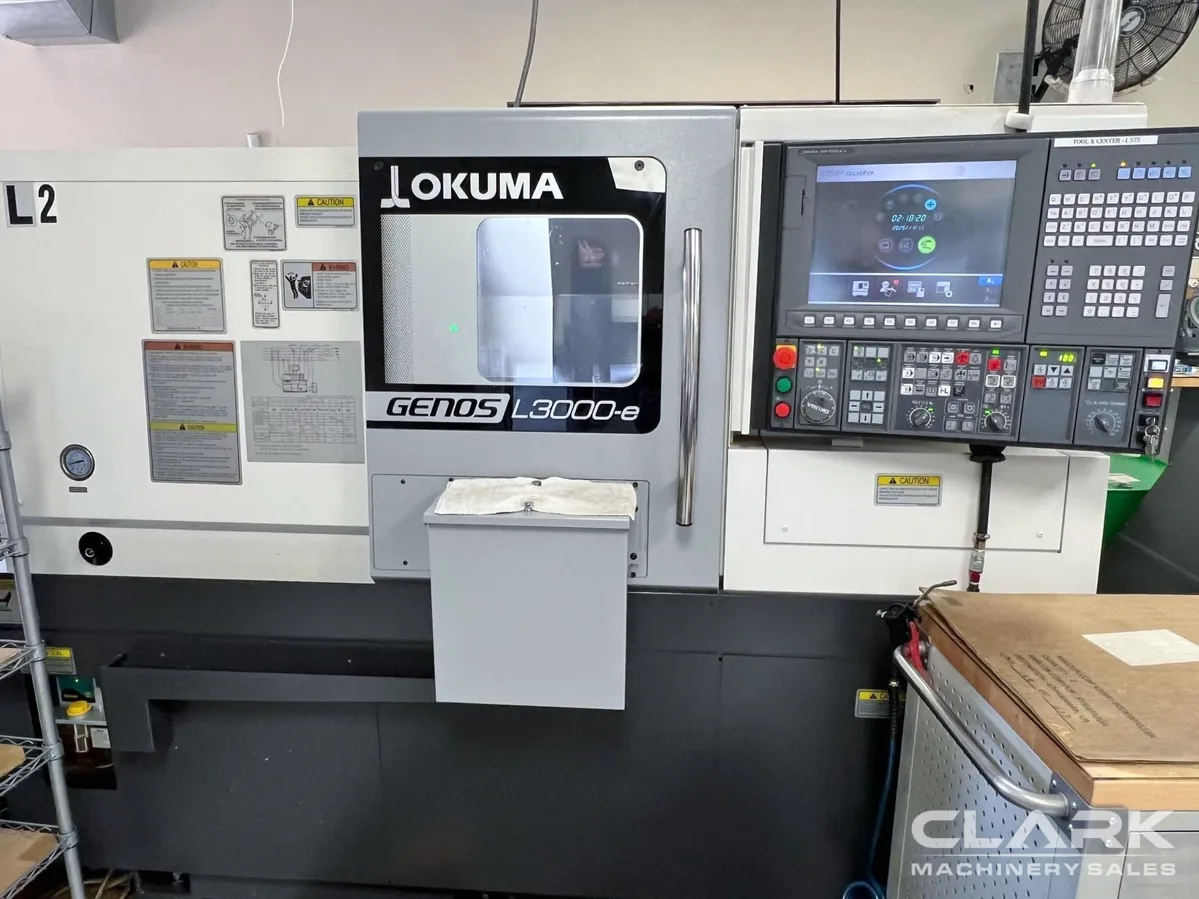 OSP-P300LA-e Control, Live Milling, 10" chuck, Tailstock, Tool Presetter, Parts Catcher, Chip Conveyor, Bar Feed Interface, (4) Live Tool Holders, only 2,000 Cutting Hours. This 2021 Okuma Genos L3000-e is in plant, under power and available immediately.