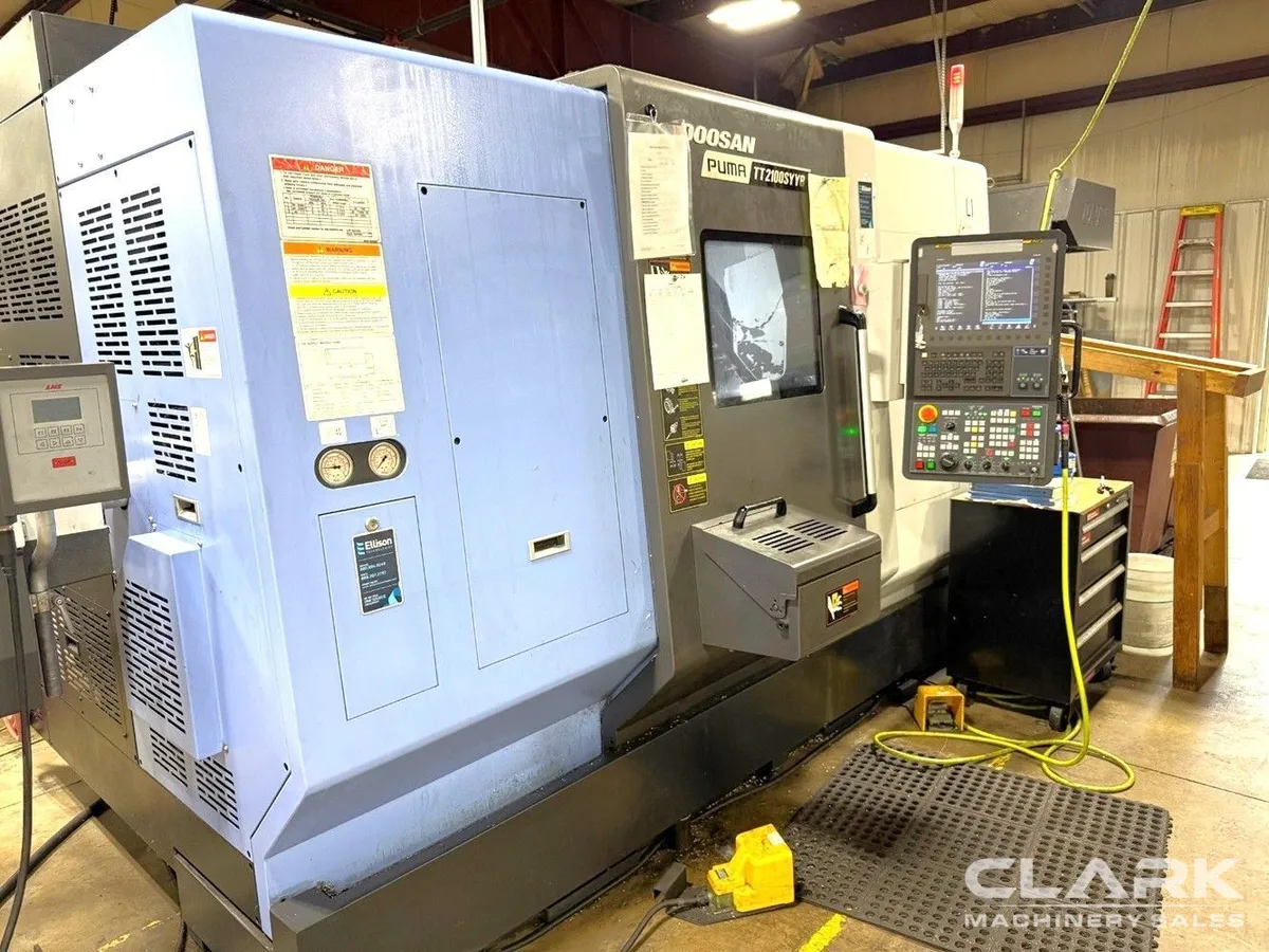 2020 Doosan Puma TT2100SYYB, excellent multi-axis CNC lathe with Fanuc OiTF control, twin 12-position turrets, live milling, and dual integral spindles. Capable of 24t N-m torque. Equipped with LNS Sprint S3 barfeed, chip conveyor, and more. Available now, inquire today!