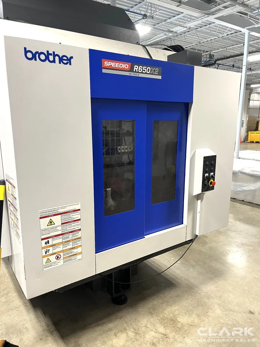 Like New. 250 Hours, (2) Brother T-200A Rotary Tables, 2-Pallet, Blum Probe System, BT-30, 16,000 RPM. This Japanese-made 2021 Brother Speedio R650X2 drill and tap vertical machining center also includes LNS chip conveyor, tool washing system and chip shower station.