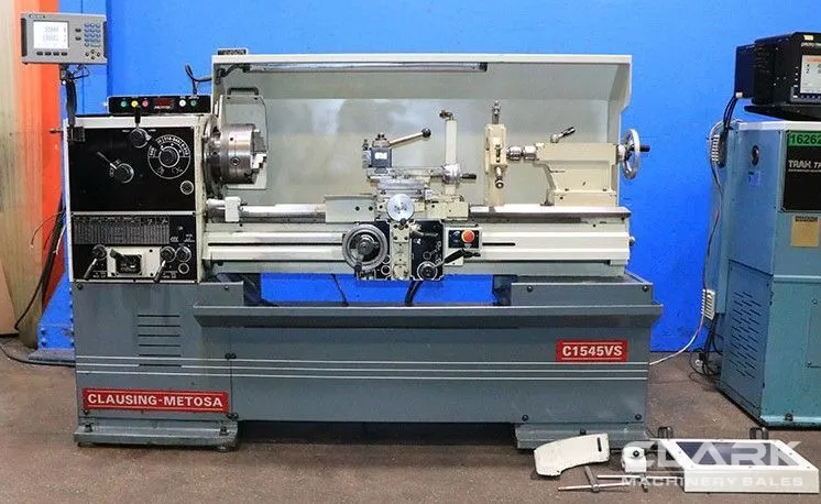 2006 Clausing Metosa C1545VS lathe in used condition, featuring 15.75" swing, 45" centers, 2.05" spindle bore, and 7.5 hp power. Includes Acu-Rite DRO, 3-jaw chuck, quick change toolpost, steady rest, and more.
