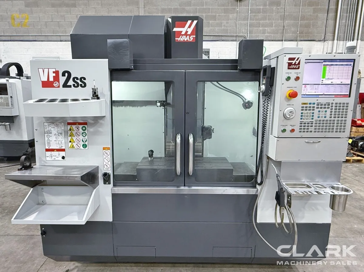 Haas NextGen Control, 4th Axis Drive & Wiring, Renishaw Probing, Side-Mount Tool Changer (30 ATC), 12,000 RPM, Programmable Coolant, Chip Auger, High-Speed Machining. This 2020 Haas VF-2SS CNC Vertical Machining Center is in plant, under power and available immediately.